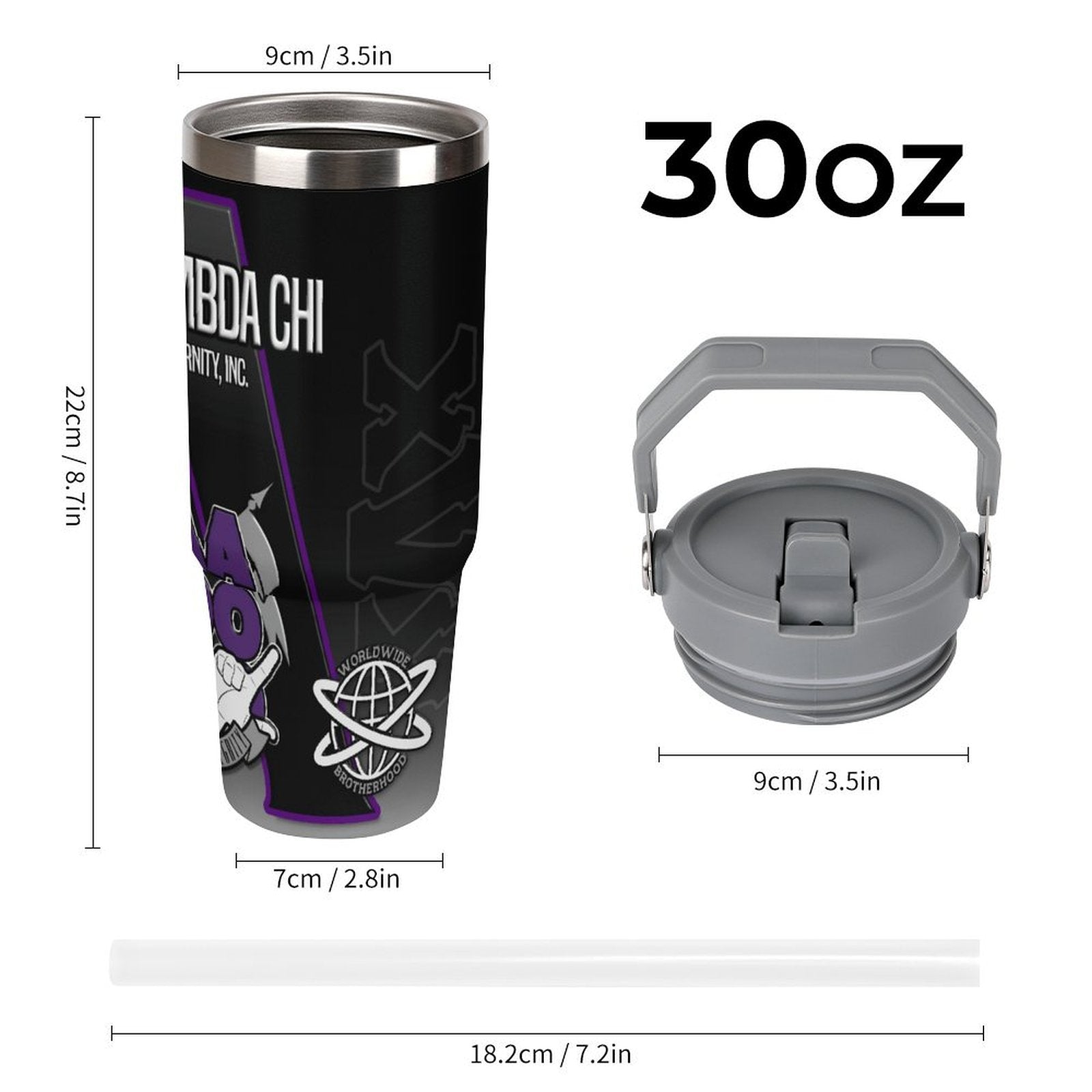 • Size: Height: 8.7″ (22 cm); Upper diameter: 3.5″ (9cm);Bottom diameter: 2.8″ (7 cm); Comes with a plastic straw and screw-on lid; Capacity: 30 OZ.